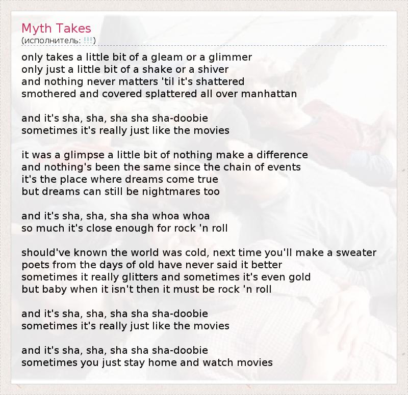 А как ты думаешь, о чем песня "Myth Takes" ?