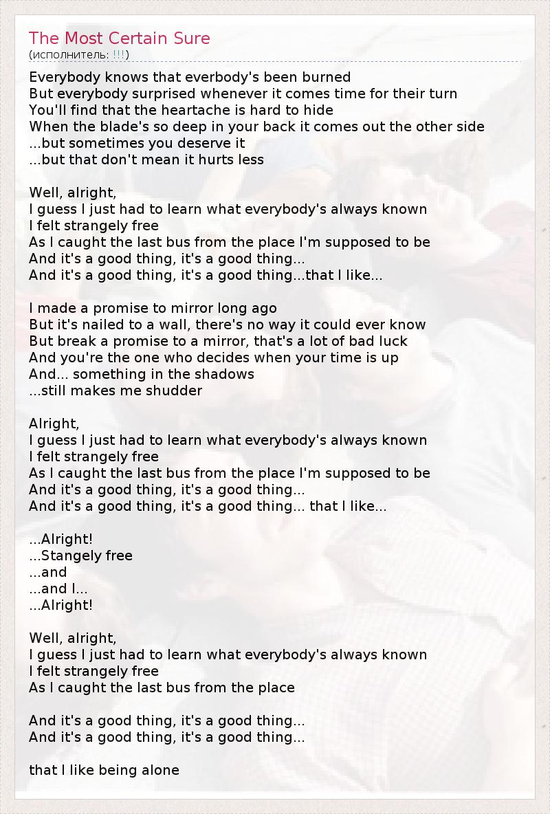 А как ты думаешь, о чем песня "The Most Certain Sure" ?