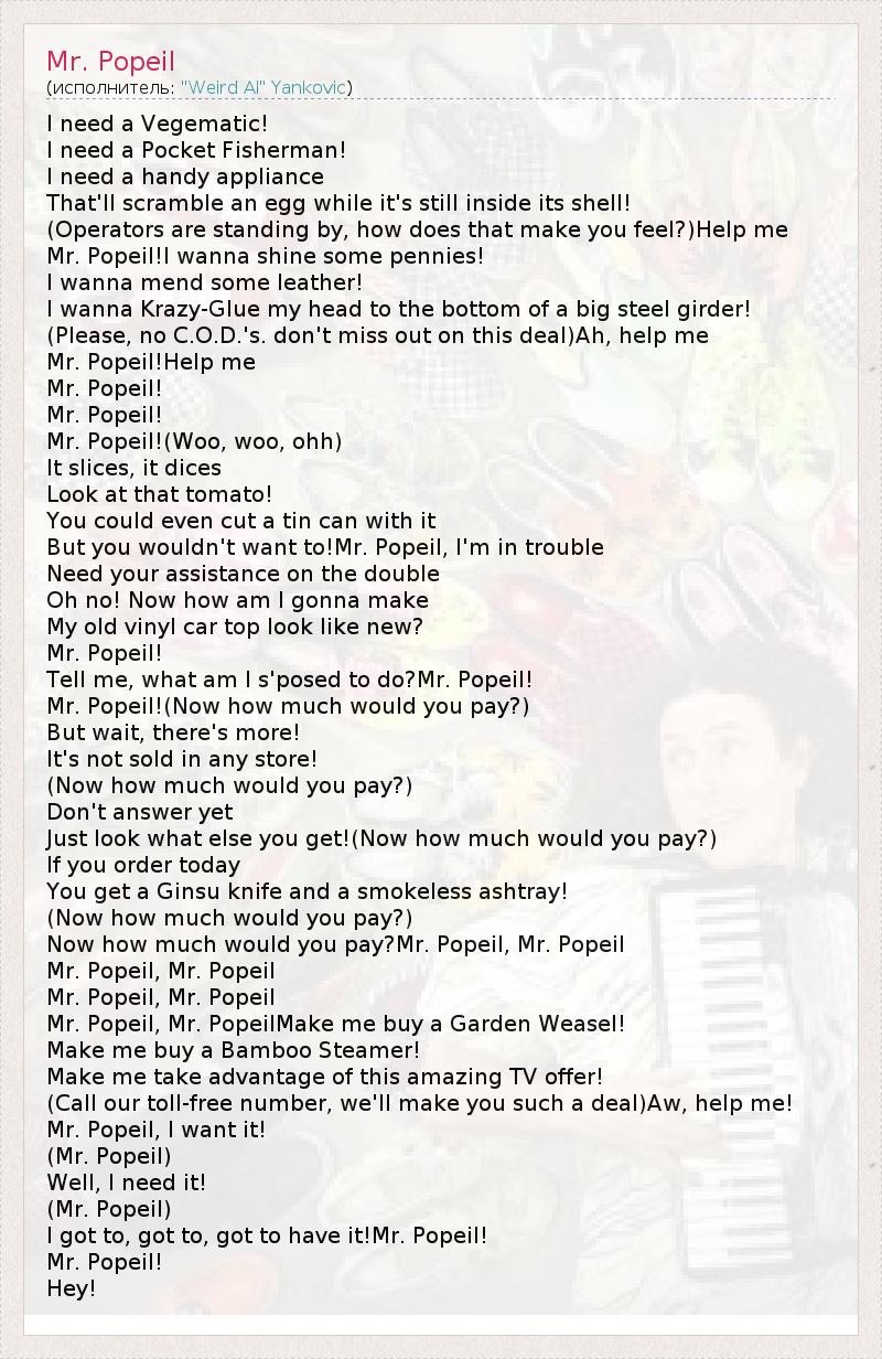 А как ты думаешь, о чем песня "Mr. Popeil" ?