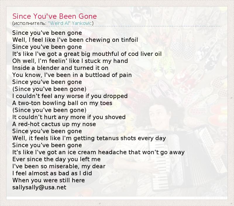 А как ты думаешь, о чем песня "Since You've Been Gone" ?