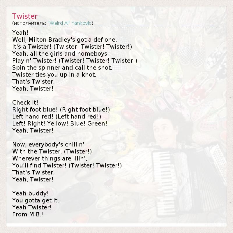 А как ты думаешь, о чем песня "Twister" ?