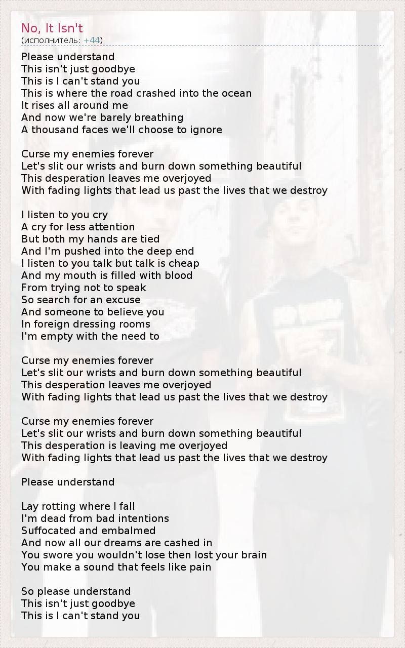 А как ты думаешь, о чем песня "No, It Isn't" ?