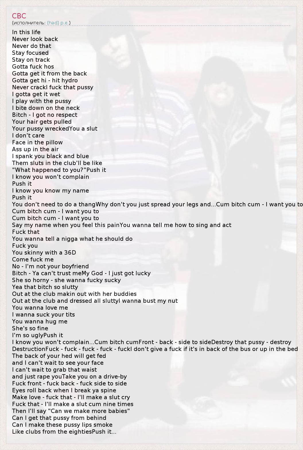 I know you won't complain...Cum bitch cumFront - back - side to sideDestroy that pussy - destroy