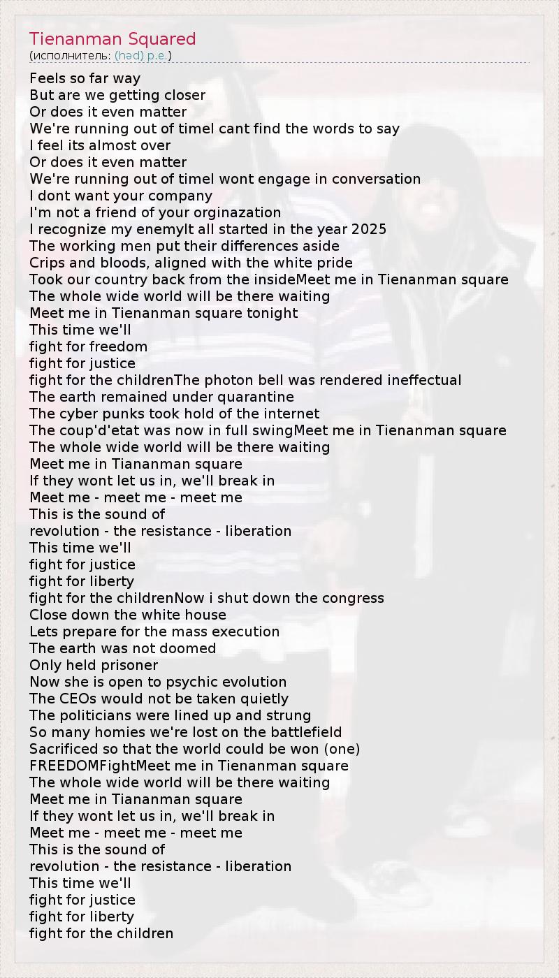 А как ты думаешь, о чем песня "Tienanman Squared" ?