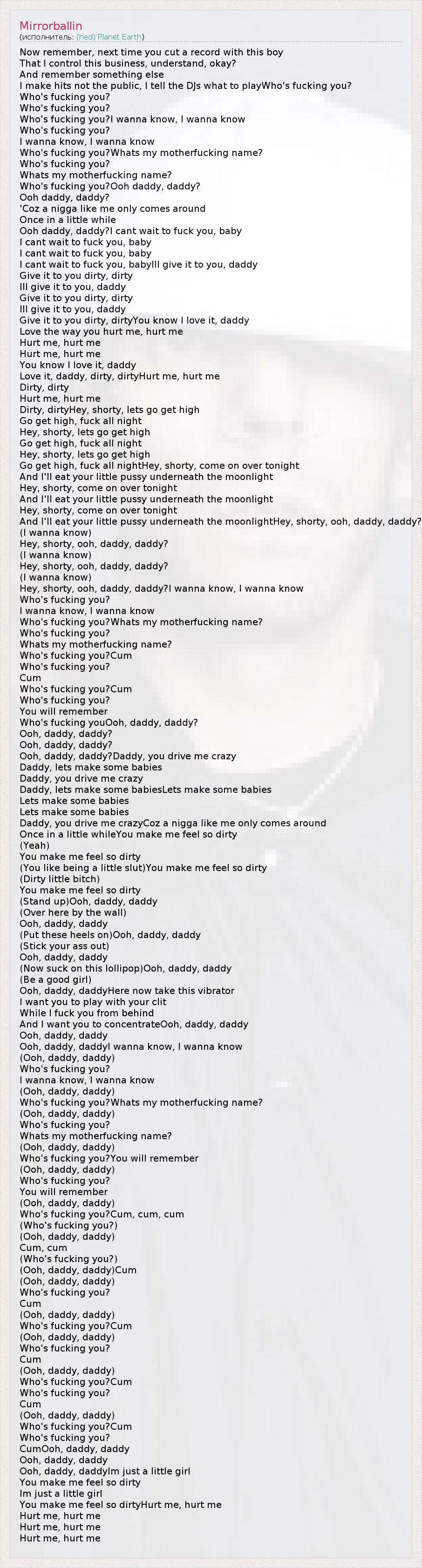 А как ты думаешь, о чем песня "Mirrorballin" ?