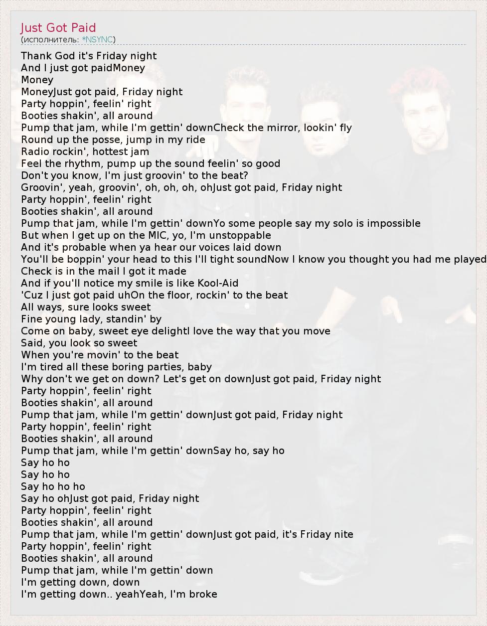Pump that jam, while I'm gettin' downJust got paid, Friday night