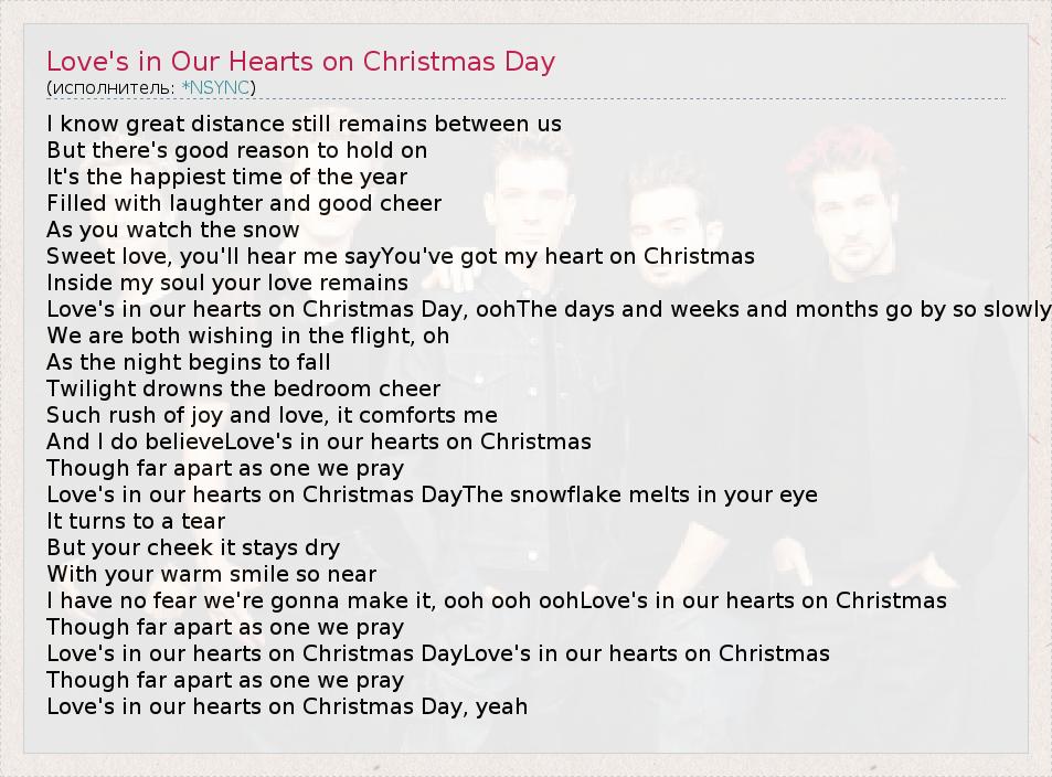 А как ты думаешь, о чем песня "Love's in Our Hearts on Christmas Day" ?
