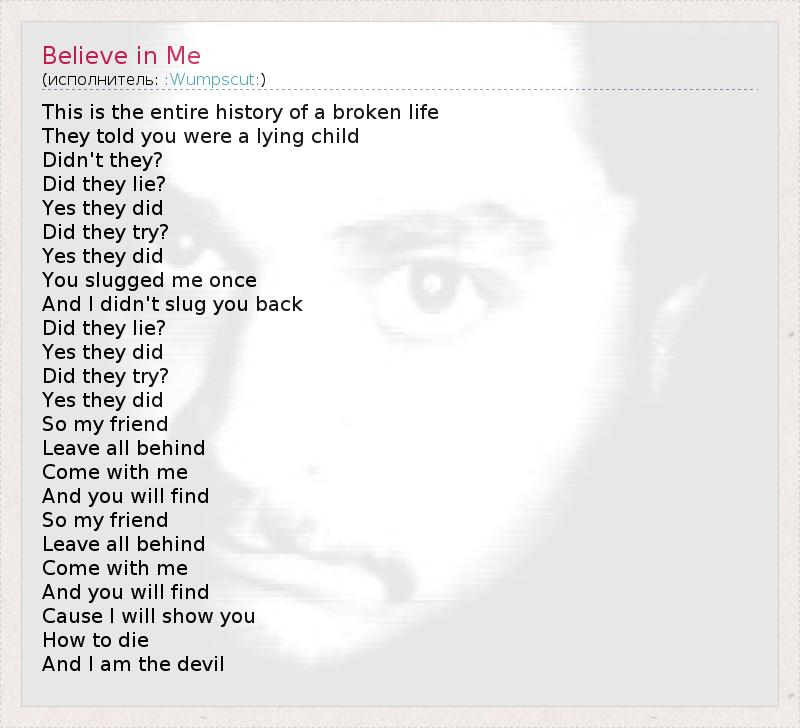А как ты думаешь, о чем песня "Believe in Me" ?