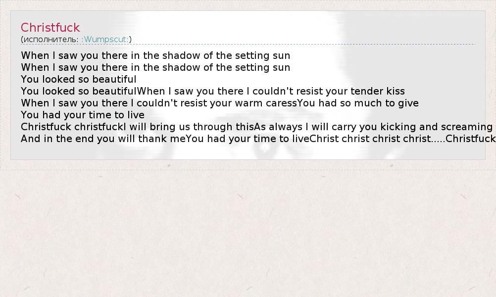 And in the end you will thank meYou had your time to liveChrist christ christ christ.....Christfuck