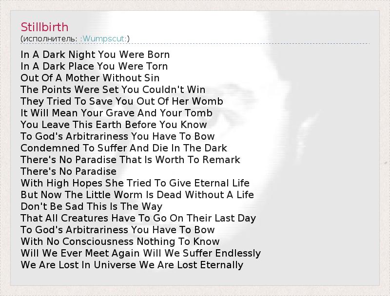 А как ты думаешь, о чем песня "Stillbirth" ?