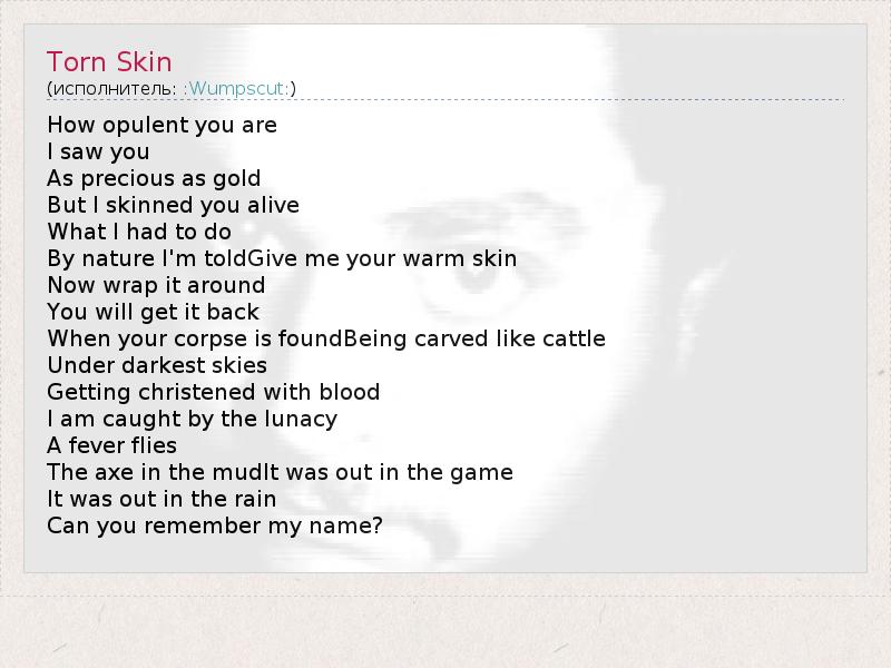 А как ты думаешь, о чем песня "Torn Skin" ?