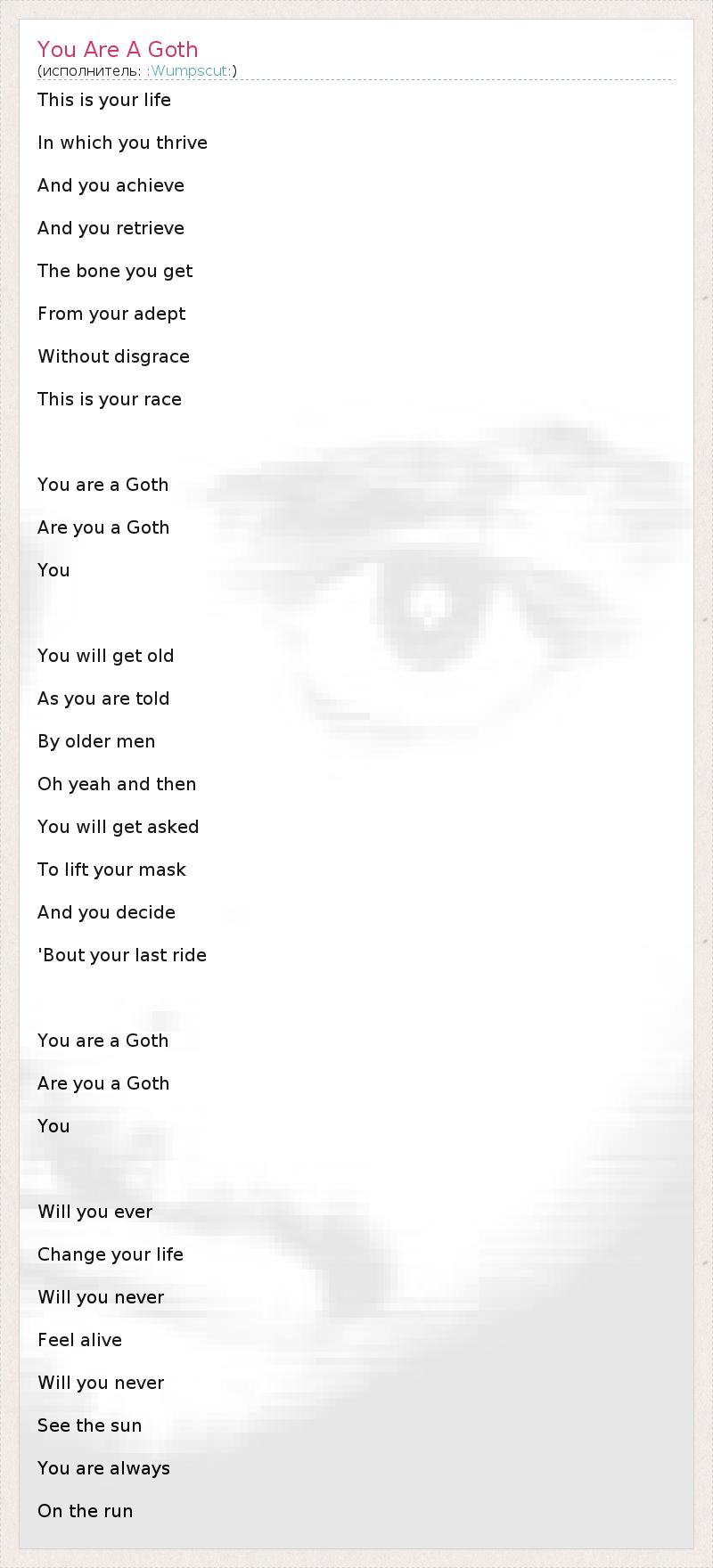А как ты думаешь, о чем песня "You Are A Goth" ?