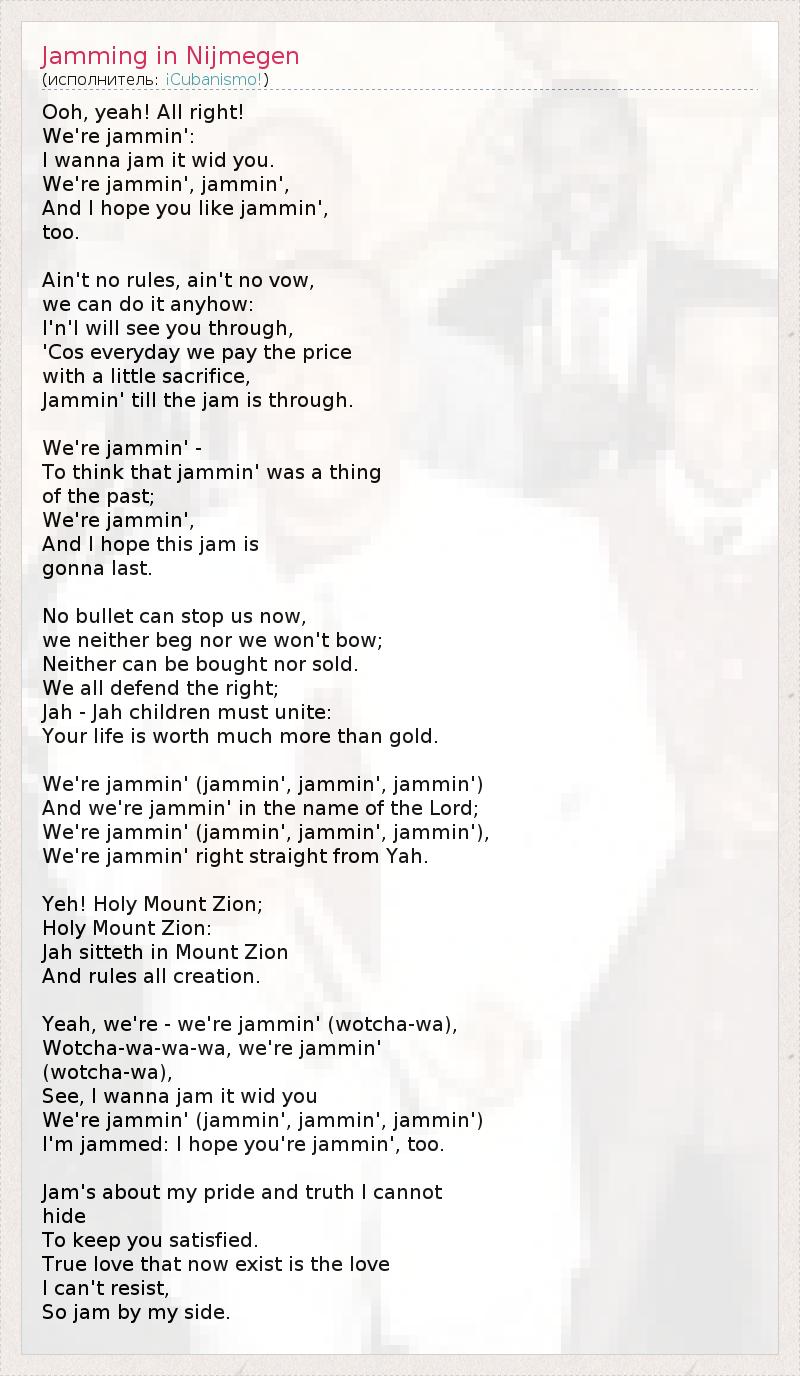 А как ты думаешь, о чем песня "Jamming in Nijmegen" ?