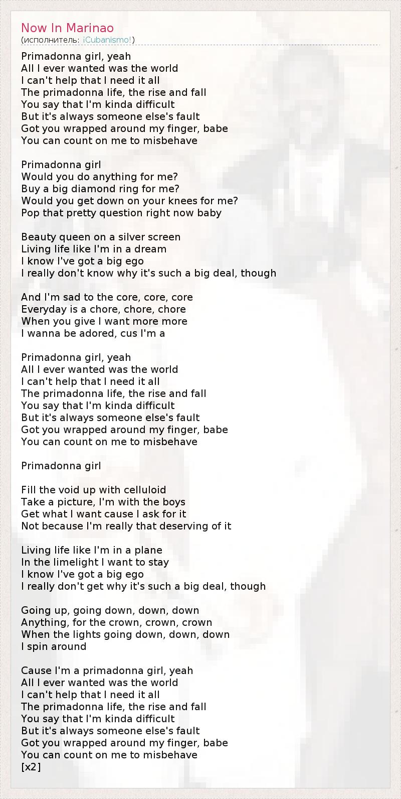 А как ты думаешь, о чем песня "Now In Marinao" ?