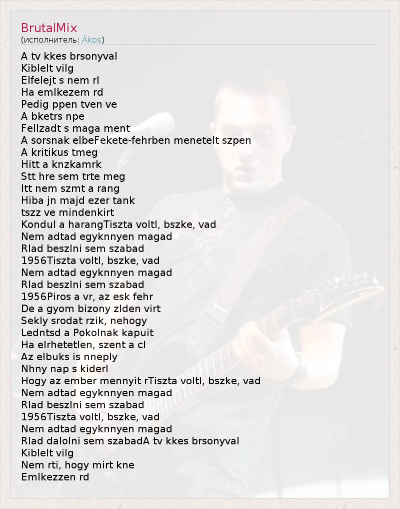 Это интересно:Акос Ковач (Ákos) родился 6 апреля 1968 года в Будапеште. Раньше Акос играл в группе Bonanza Banzai, а после ее распада в1995 году занялся сольной карьерой. В 1999 году Акос перевел песни Фила Коллинза к мультфильму "Тарзан" на венгерский язык.Также он известен серьезными поэтическими текстами, которые пишет сам. Его можно назвать одним из самых известных поп-рок-исполнителей из Венгрии.Имя... продолжение