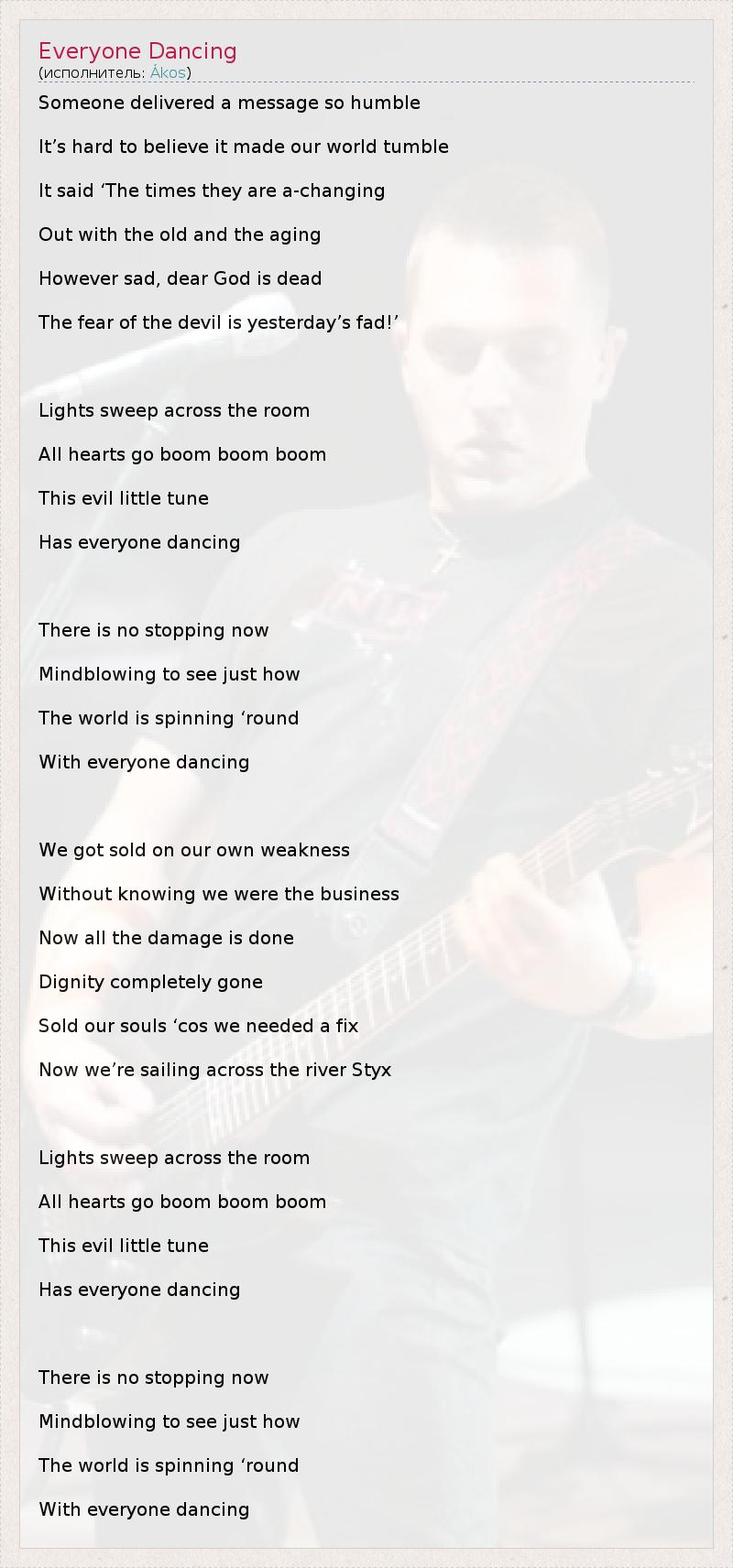 А как ты думаешь, о чем песня "Everyone Dancing" ?
