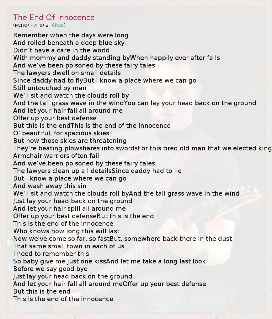 А как ты думаешь, о чем песня "The End Of Innocence" ?