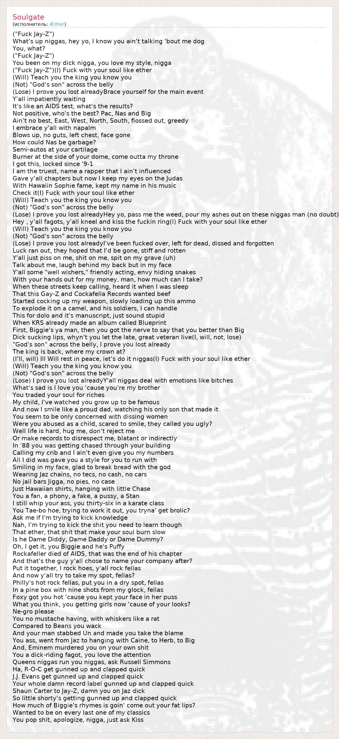 ("Fuck Jay-Z")(I) Fuck with your soul like ether