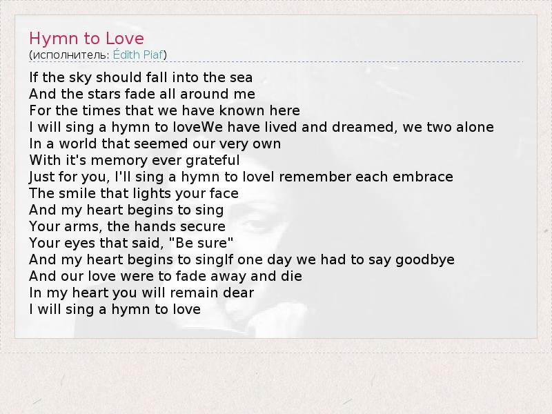 А как ты думаешь, о чем песня "Hymn to Love" ?
