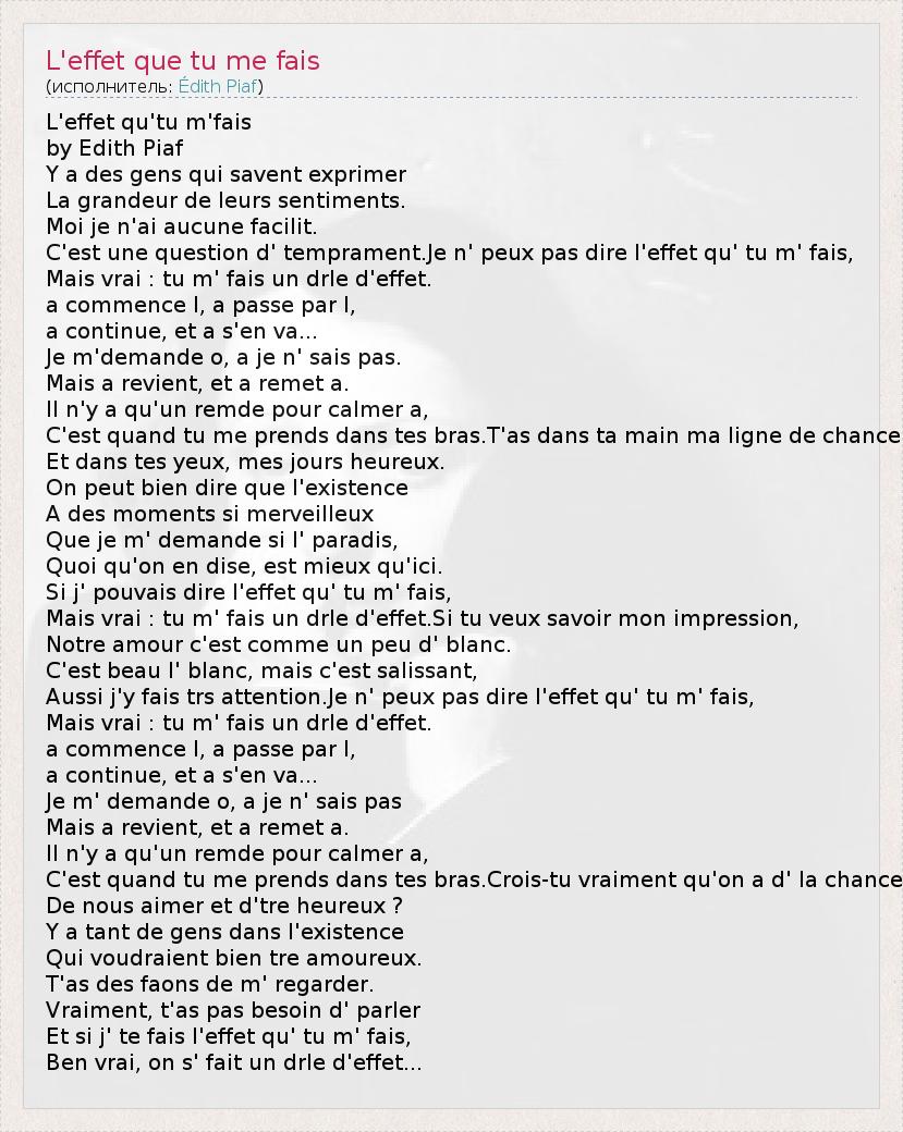 А как ты думаешь, о чем песня "L'effet que tu me fais" ?