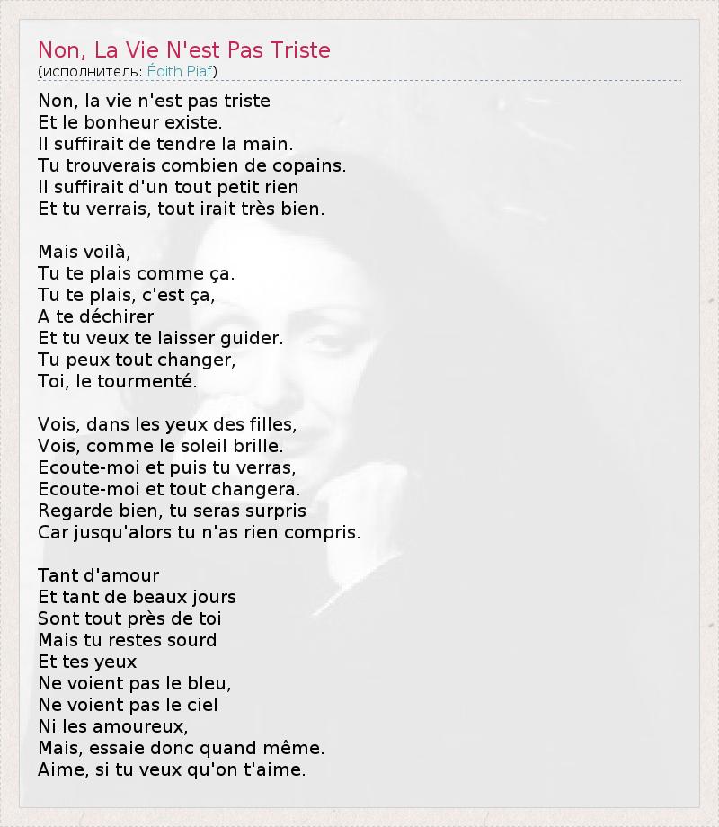 ГлавнаяИсполнителиÉdith PiafNon, La Vie N'est Pas Triste