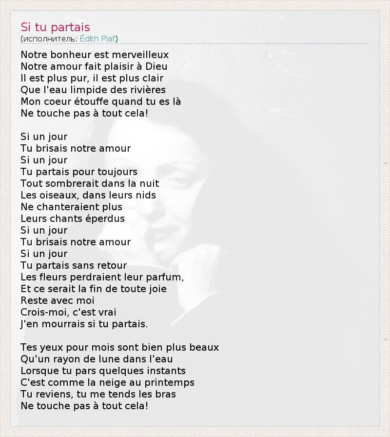 А как ты думаешь, о чем песня "Si tu partais" ?
