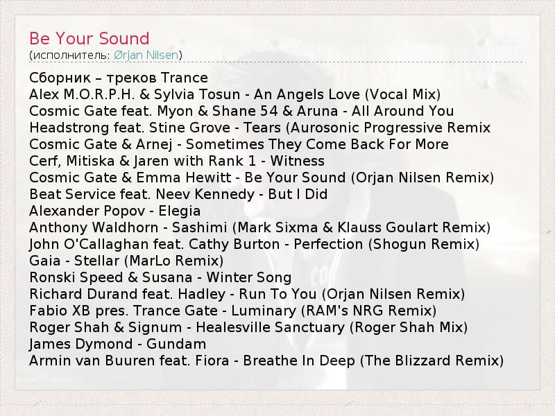 А как ты думаешь, о чем песня "Be Your Sound" ?