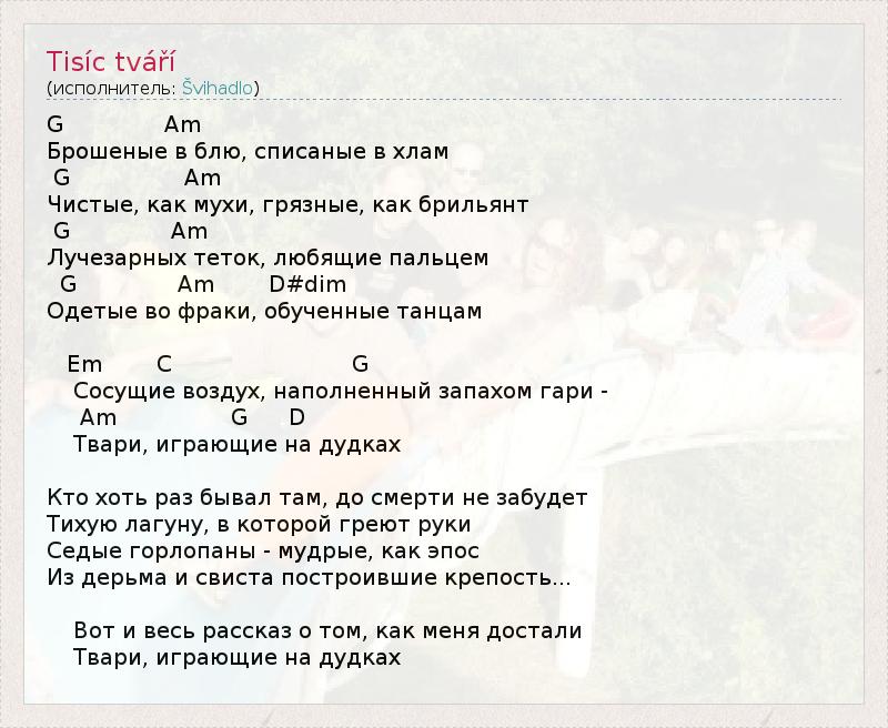 А как ты думаешь, о чем песня "Tisíc tváří" ?