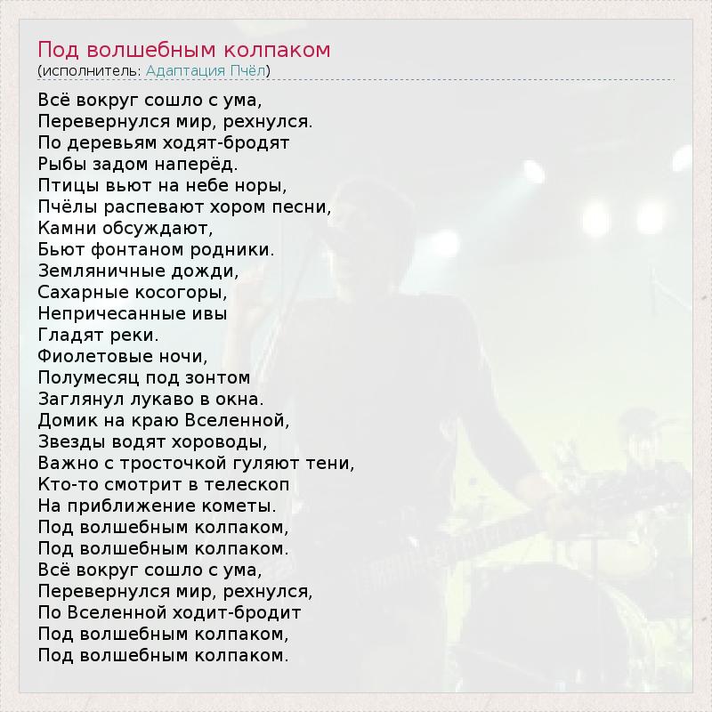 А как ты думаешь, о чем песня "Под волшебным колпаком" ?