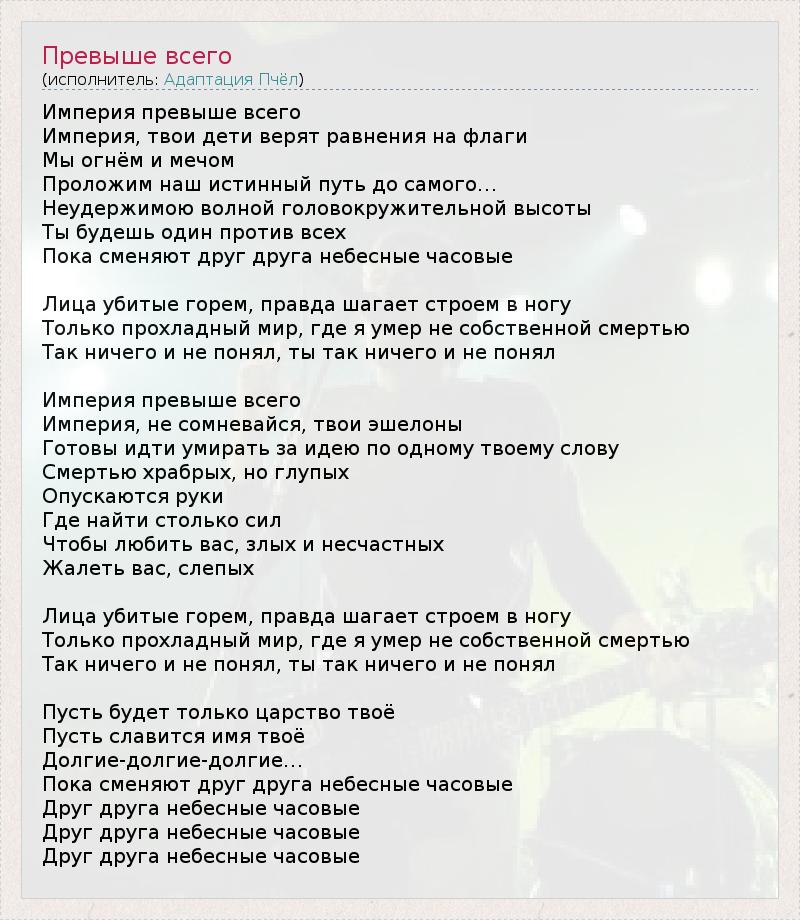 А как ты думаешь, о чем песня "Превыше всего" ?
