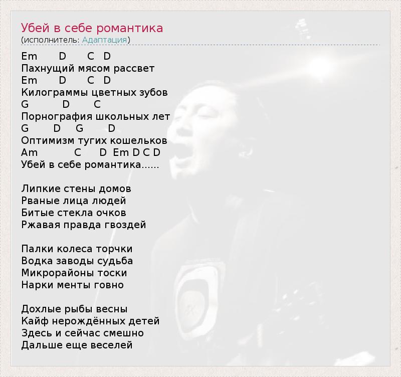 ГлавнаяИсполнителиАдаптацияУбей в себе романтика