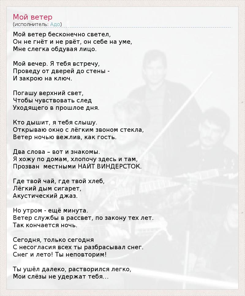 А как ты думаешь, о чем песня "Мой ветер" ?