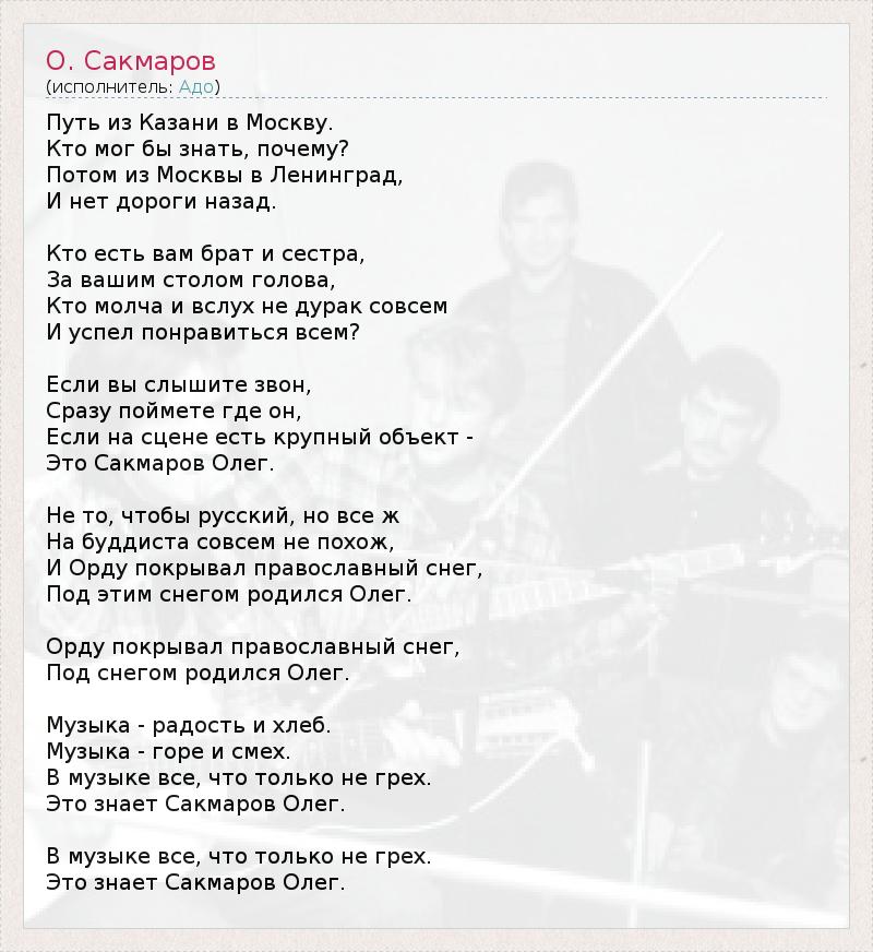 А как ты думаешь, о чем песня "О. Сакмаров" ?