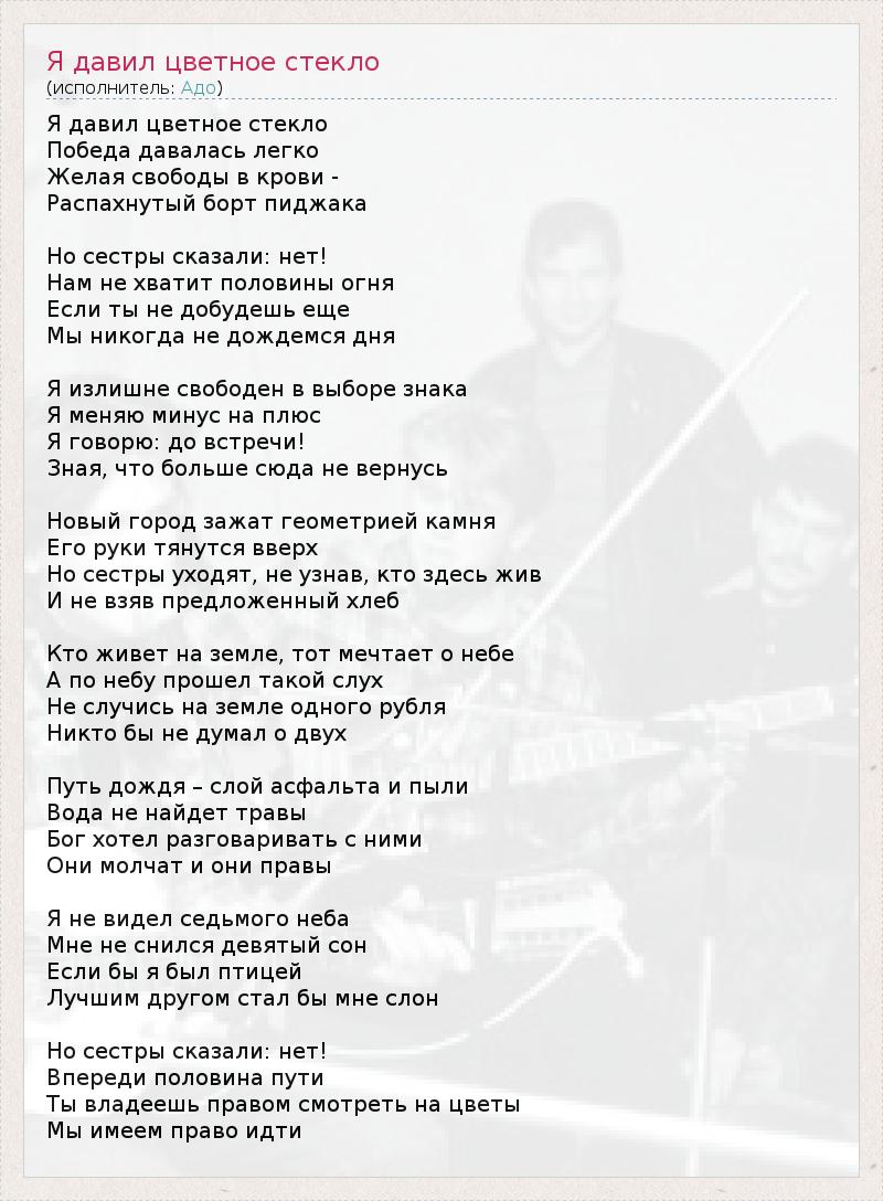 ГлавнаяИсполнителиАдоЯ давил цветное стекло
