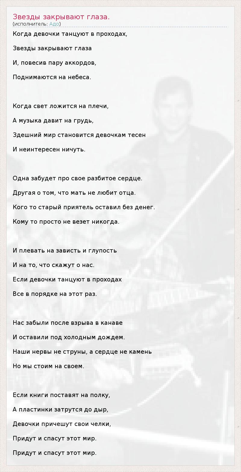 А как ты думаешь, о чем песня "Звезды закрывают глаза." ?