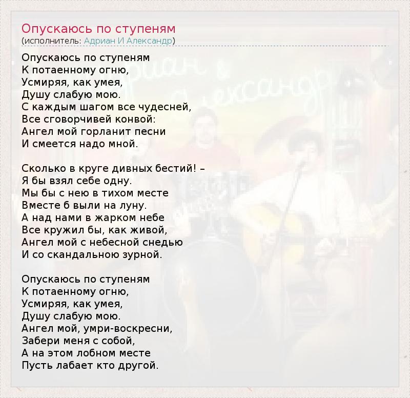ГлавнаяИсполнителиАдриан И АлександрОпускаюсь по ступеням