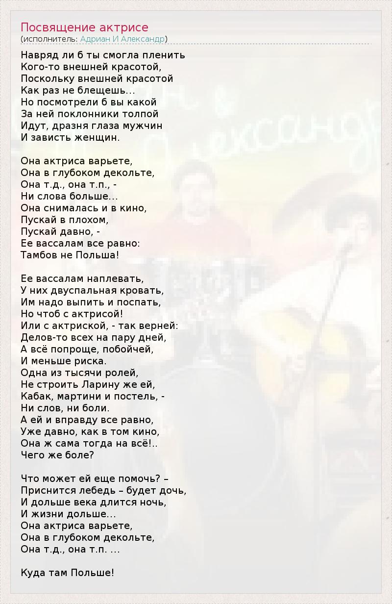 А как ты думаешь, о чем песня "Посвящение актрисе" ?