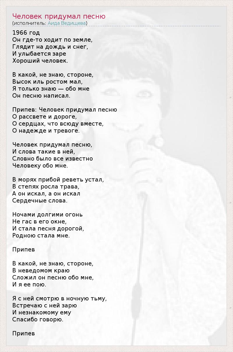 ГлавнаяИсполнителиАида ВедищеваЧеловек придумал песню