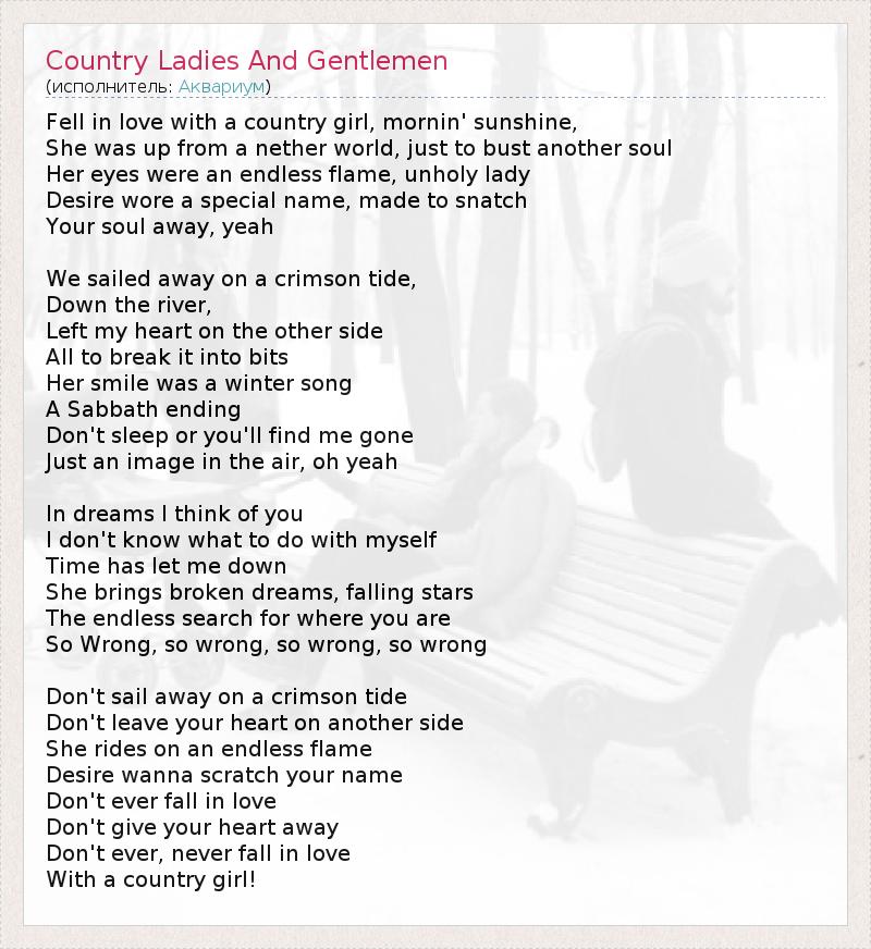 А как ты думаешь, о чем песня "Country Ladies And Gentlemen" ?
