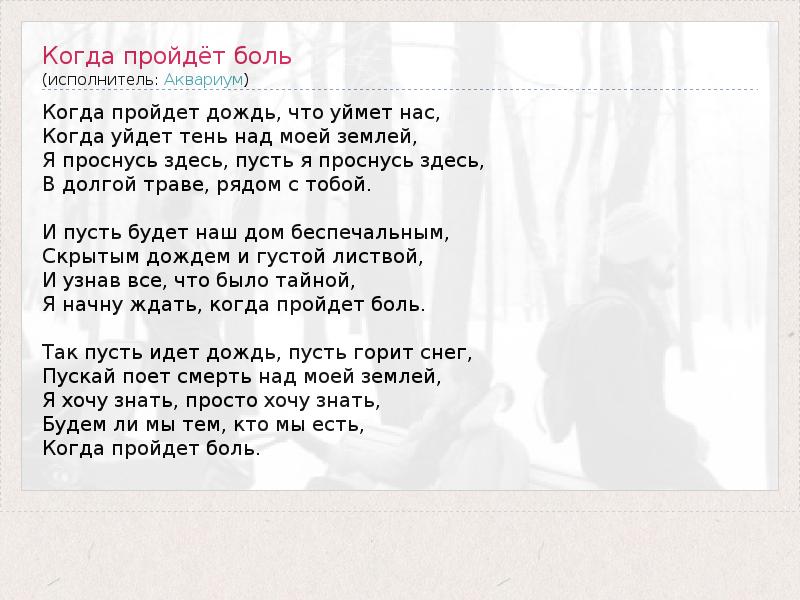 ГлавнаяИсполнителиАквариумКогда пройдёт боль