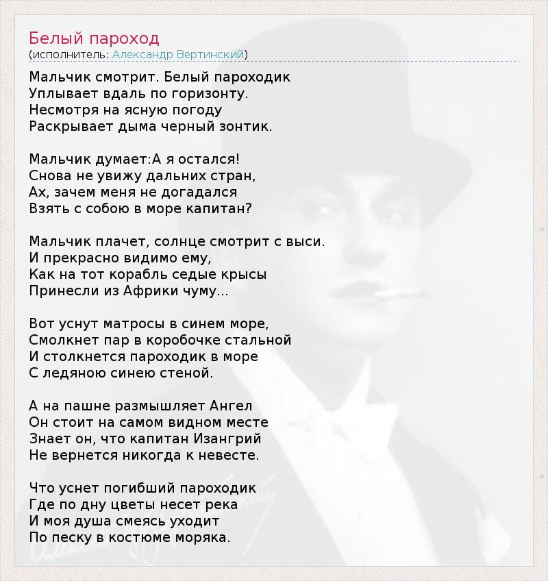 А как ты думаешь, о чем песня "Белый пароход" ?