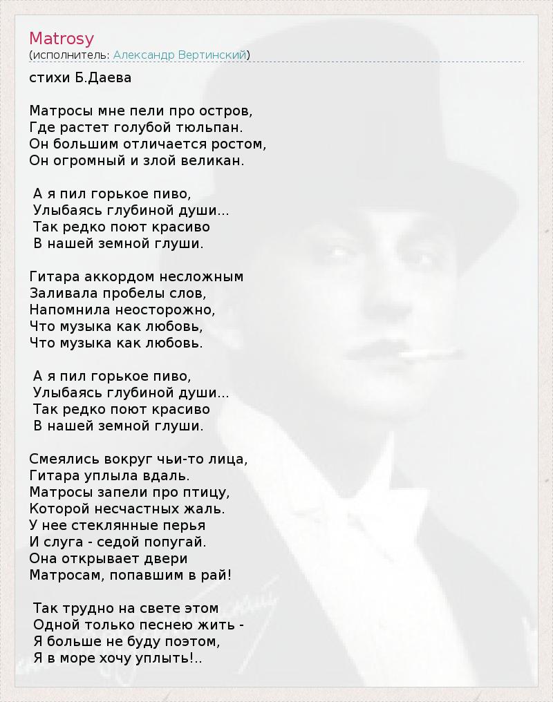 Это интересно:Александр Вертинский родился в Киеве 9 (21) марта 1889 года. Здесь же прошло его детство.Его отец, адвокат, не был официально женат на его матери, так как ему не давала развода первая жена. После смерти матери отцу пришлось "усыновить" детей. Сестра Надя осталась жить у отца, а Александра отдали тетке, Марье Степановне, сестре матери. Отец очень тяжело переживал смерть жены. Вскоре он... продолжение
