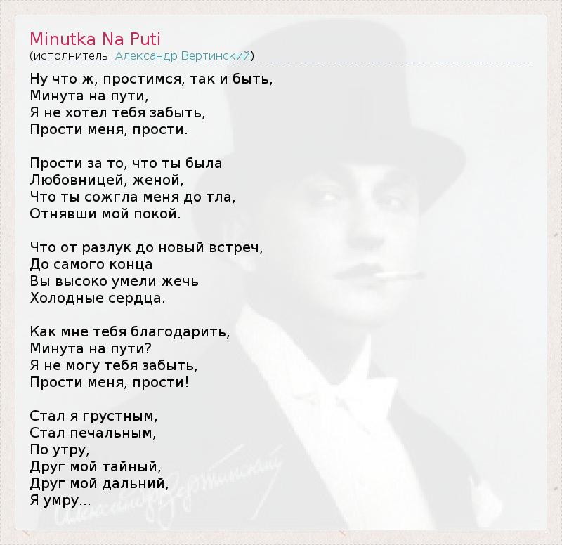 Это интересно:Александр Вертинский родился в Киеве 9 (21) марта 1889 года. Здесь же прошло его детство.Его отец, адвокат, не был официально женат на его матери, так как ему не давала развода первая жена. После смерти матери отцу пришлось "усыновить" детей. Сестра Надя осталась жить у отца, а Александра отдали тетке, Марье Степановне, сестре матери. Отец очень тяжело переживал смерть жены. Вскоре он... продолжение