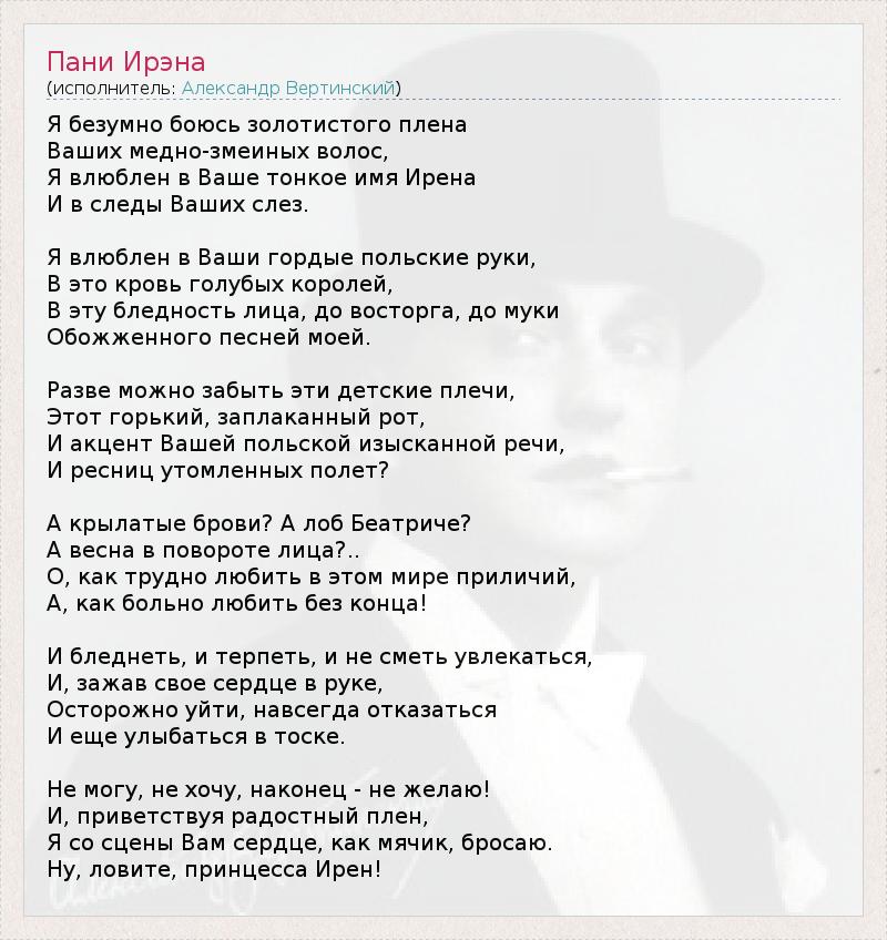 А как ты думаешь, о чем песня "Пани Ирэна" ?
