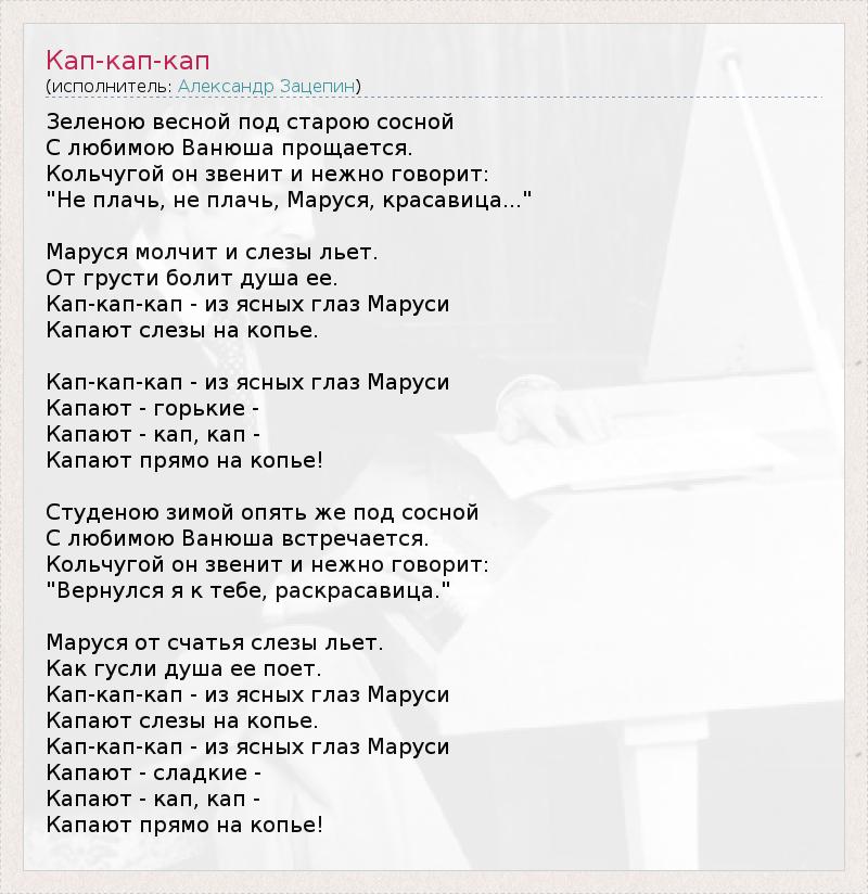 А как ты думаешь, о чем песня "Кап-кап-кап" ?
