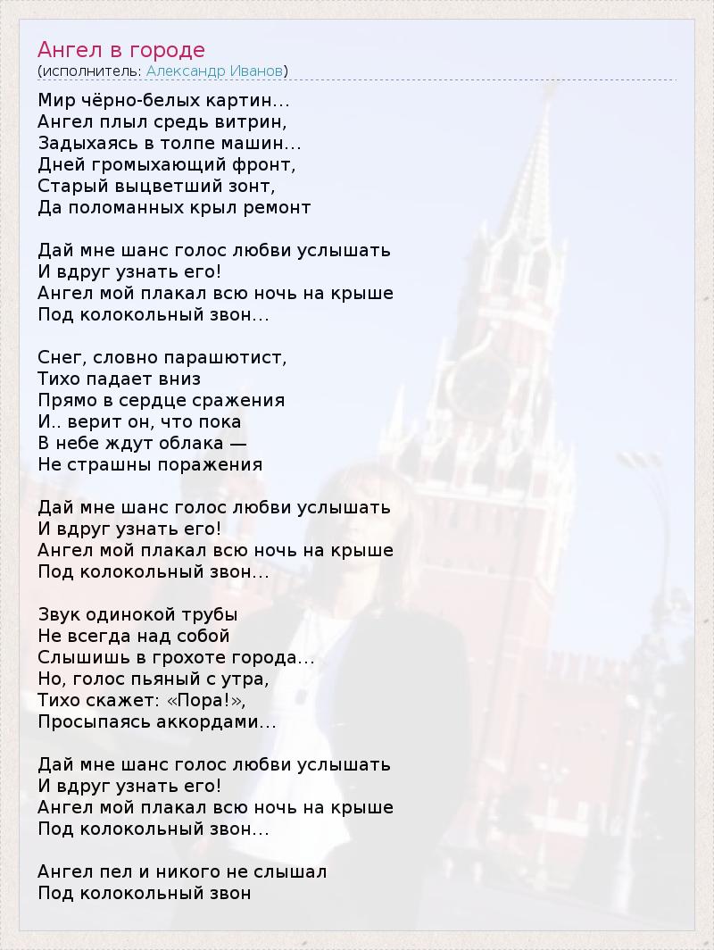 А как ты думаешь, о чем песня "Ангел в городе" ?