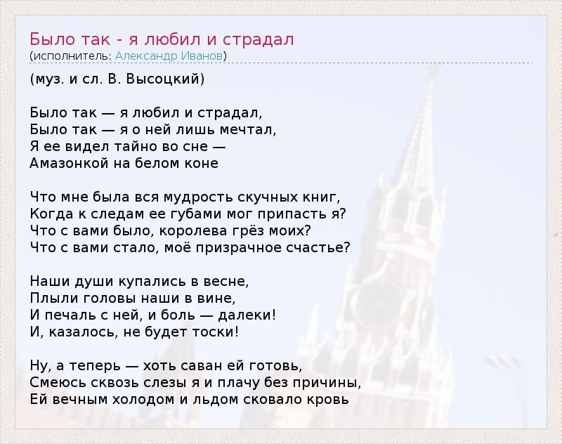 А как ты думаешь, о чем песня "Было так - я любил и страдал" ?