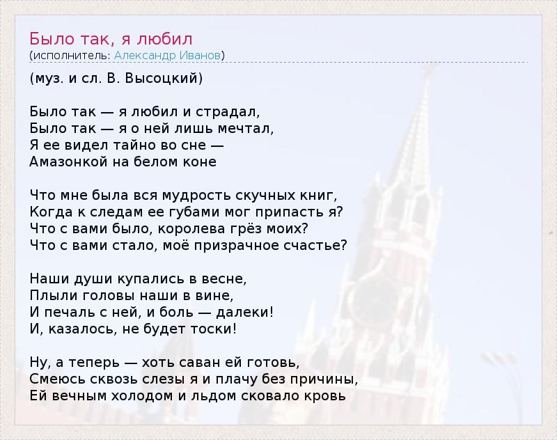 А как ты думаешь, о чем песня "Было так, я любил" ?