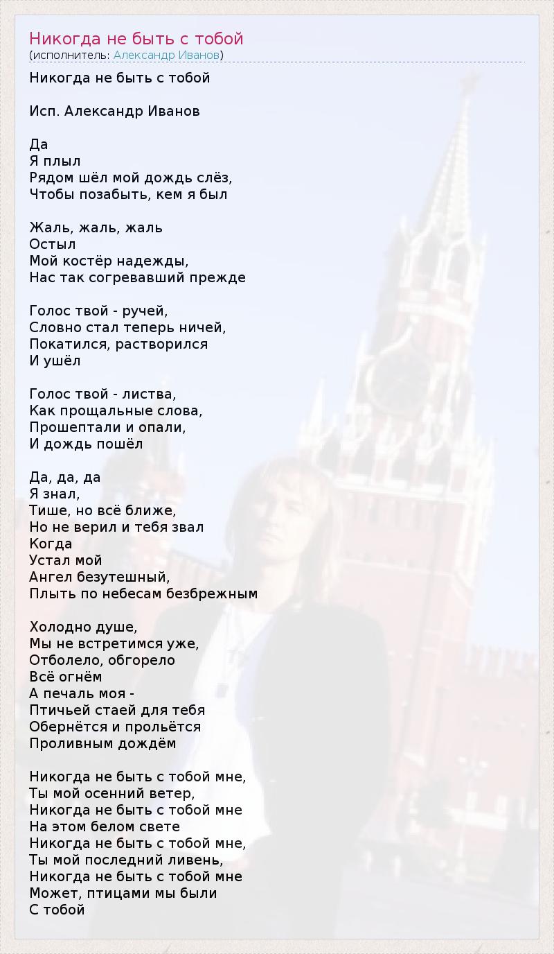 ГлавнаяИсполнителиАлександр ИвановНикогда не быть с тобой