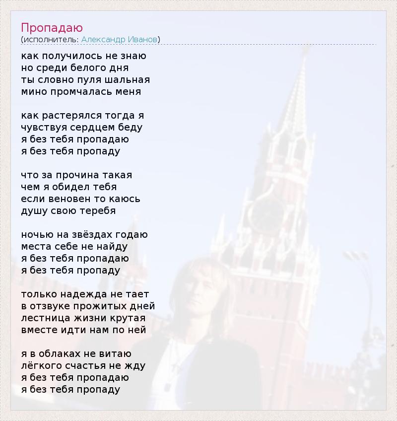 А как ты думаешь, о чем песня "Пропадаю" ?